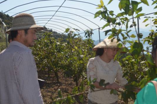 2015年10月15日,宁波市农科院林科所刘珠琴博士一行来我院学习交流南方大樱桃栽培技术,园艺所副所长洪莉等陪同参观南方大樱桃避雨设施大棚,全面介绍了台州目前的生产现状、花果调控、整形修剪等栽培管理技术。随后专家一行来到位于海拔在500米的黄岩平田乡的高山甜樱桃基地,在实地考察100亩甜樱桃基地的过程中,针对性的提出了几点建议:根据基地幼树结果枝花芽较少,需要培养短果枝和花簇状果枝;通过拉枝、秋季落叶后修剪,明年春季刻芽来平衡它的营养生长和生殖生长等措施,得到了他们的肯定和欢迎!